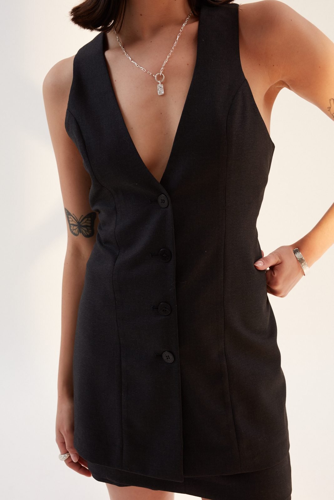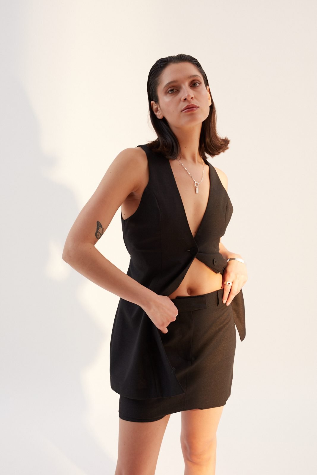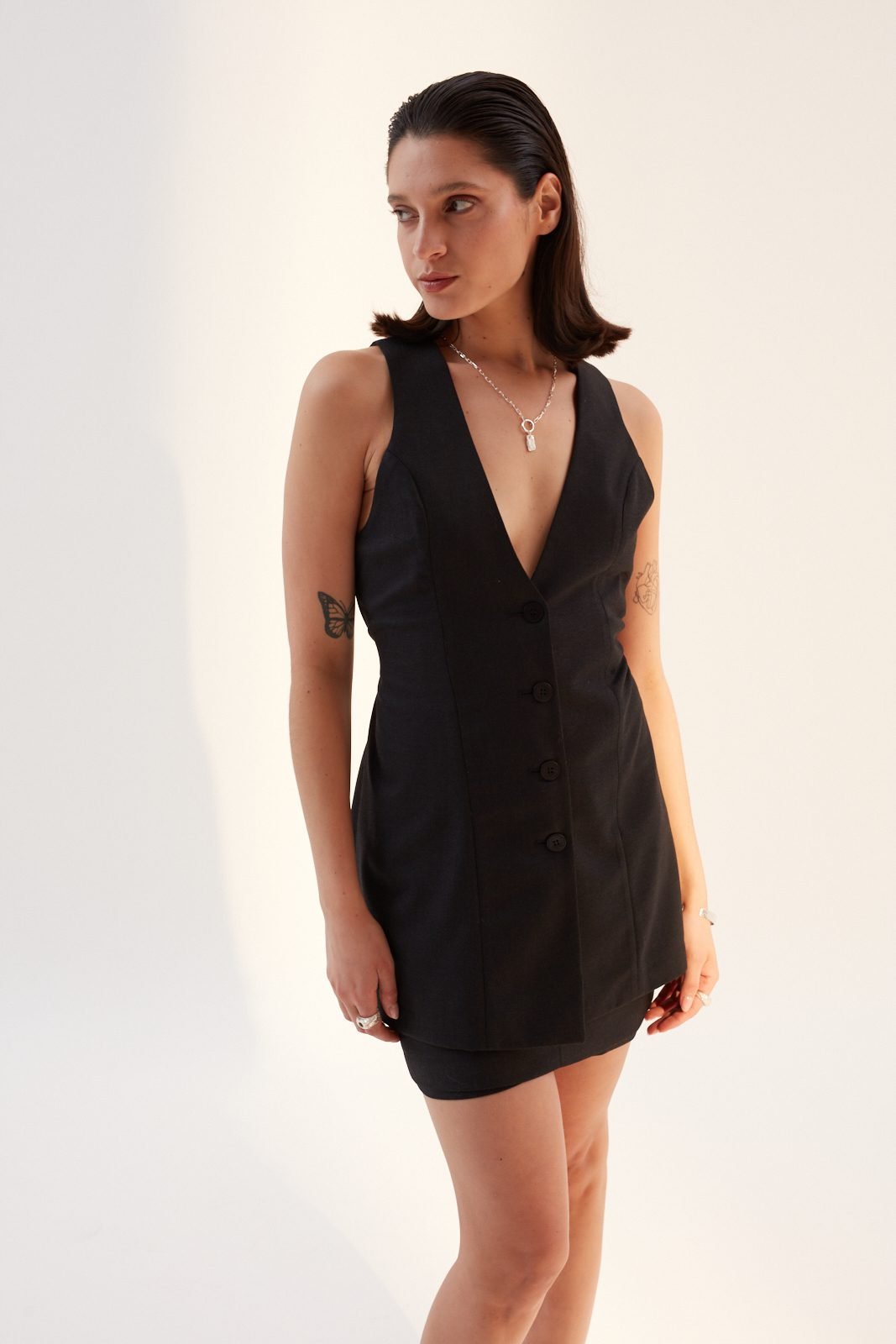 Su versatilidad lo convierte en un esencial contemporáneo: úsalo cerrado como vestido minimalista, abierto como capa ligera sobre un conjunto casual o como complemento refinado para elevar un outfit urbano. Con líneas rectas y un corte impecable, aporta estructura y fluidez en perfecto equilibrio.